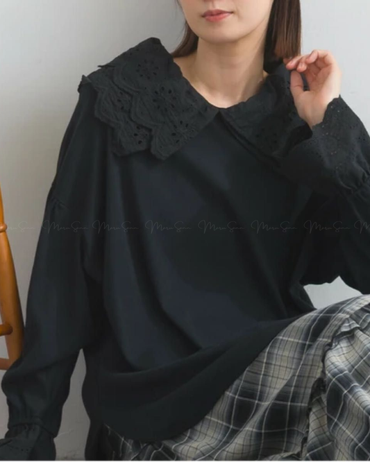 🇯🇵JAPAN ♥ 法式羅紋蕾絲領套頭衫 SS-JSA251841L
