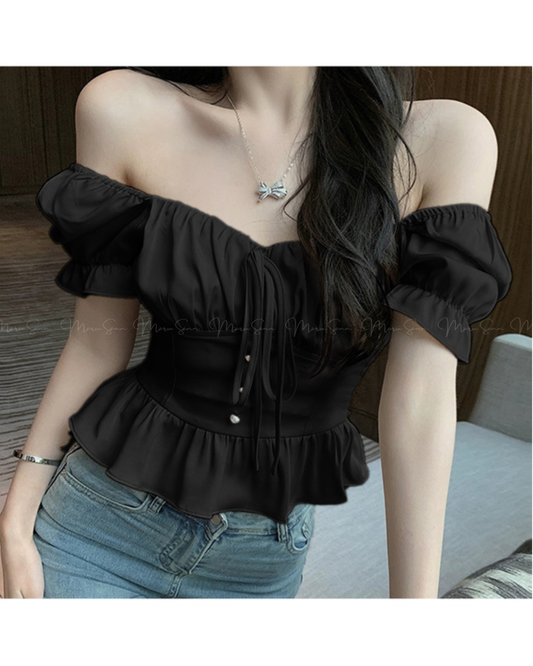 🇰🇷KOREA ♥ Festive christmassy ribbon top 派對約會造型 浪漫感蝴蝶結露肩加絨上衣 🔎 ɪᴛᴇᴍ ɴᴏ:SS-KSS97326804
