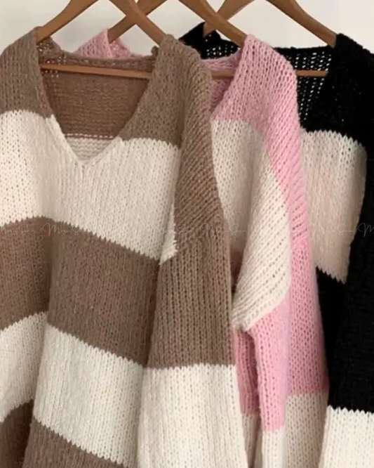 🇰🇷 KOREA ♥knitted Woolen pullover 下半身出走慵懶間條針織衫 ◍ 3色入🔎 ɪᴛᴇᴍ ɴᴏ.: SS-ks94560584