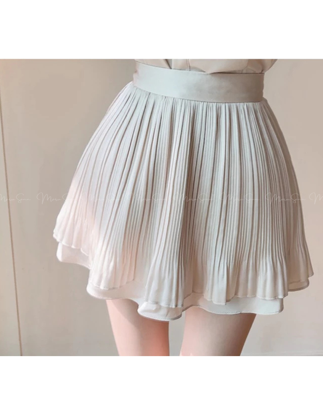 🇰🇷KOREA ♥ 緞面領結光澤襯衫+百摺裙兩件式套裝