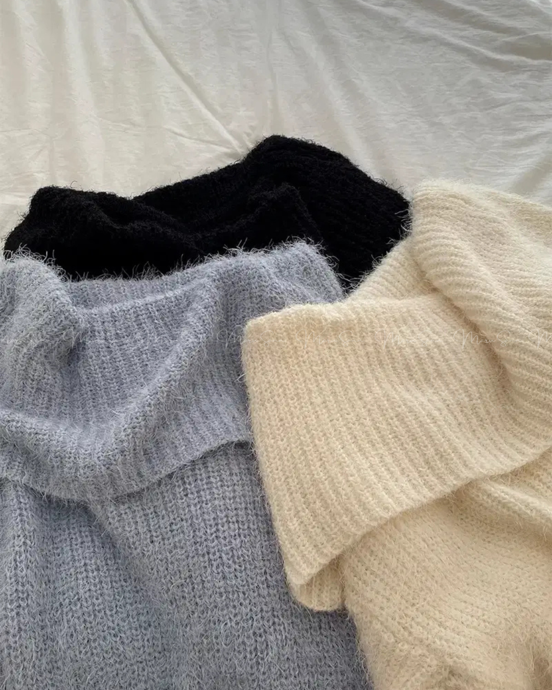 寬鬆一字領毛毛針織衫 (3色入)